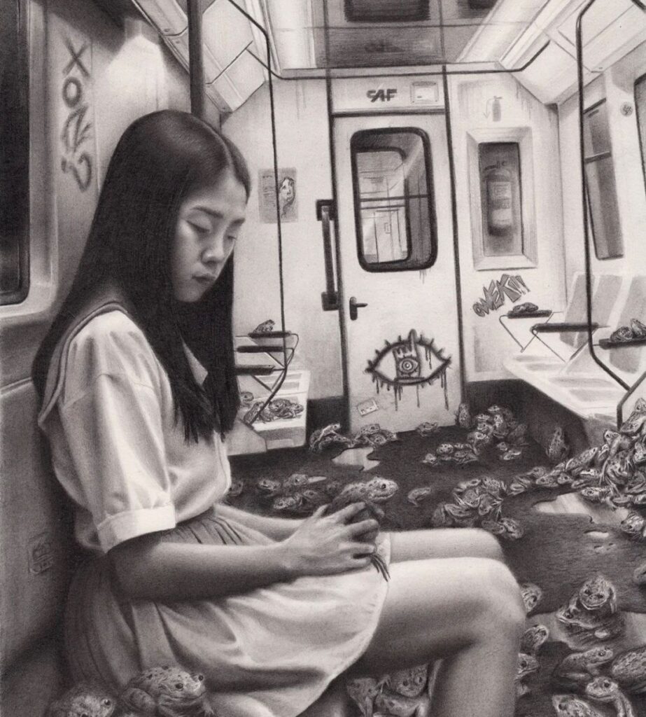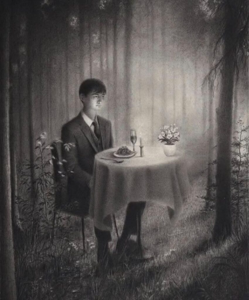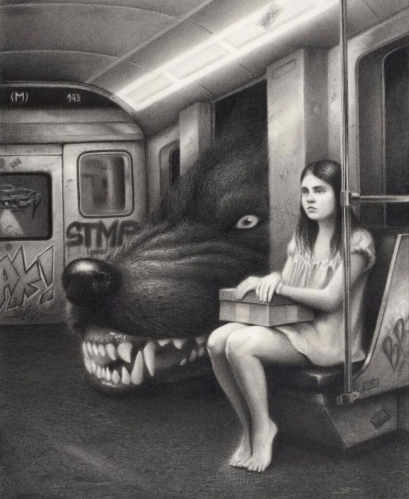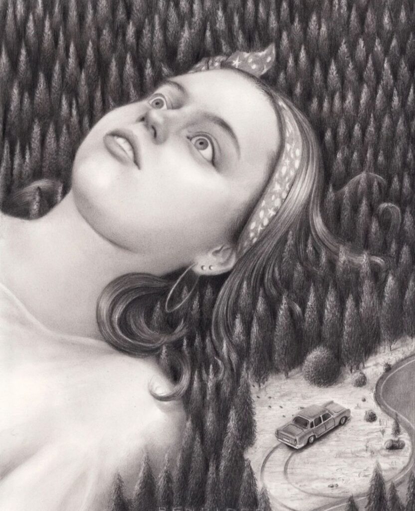 Испанец Карлос Фернандес (он же Penrider) — необычный художник. В своих работах он соединяет бытовуху и сюрреализм, добавляя привычным образам налет мистической нереальности. Плюс, он рисует карандашом и здоровски сочетает четкие формы с размытыми, очень атмосферными элементами. Получается и жутко, и мило, и очень странно.