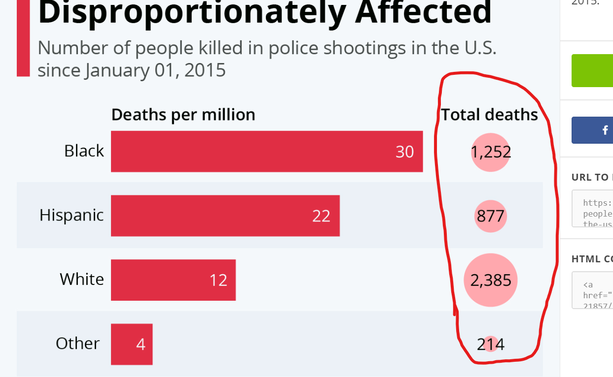 У меня вопрос: ты ссылаешься на статистику, прямо говорящую о том, что черных погибает больше — ты можешь сослаться на источники? С удовольствием почитаю, так как то, что я нашел, говорит о том, что ты, мягко говоря, не прав.