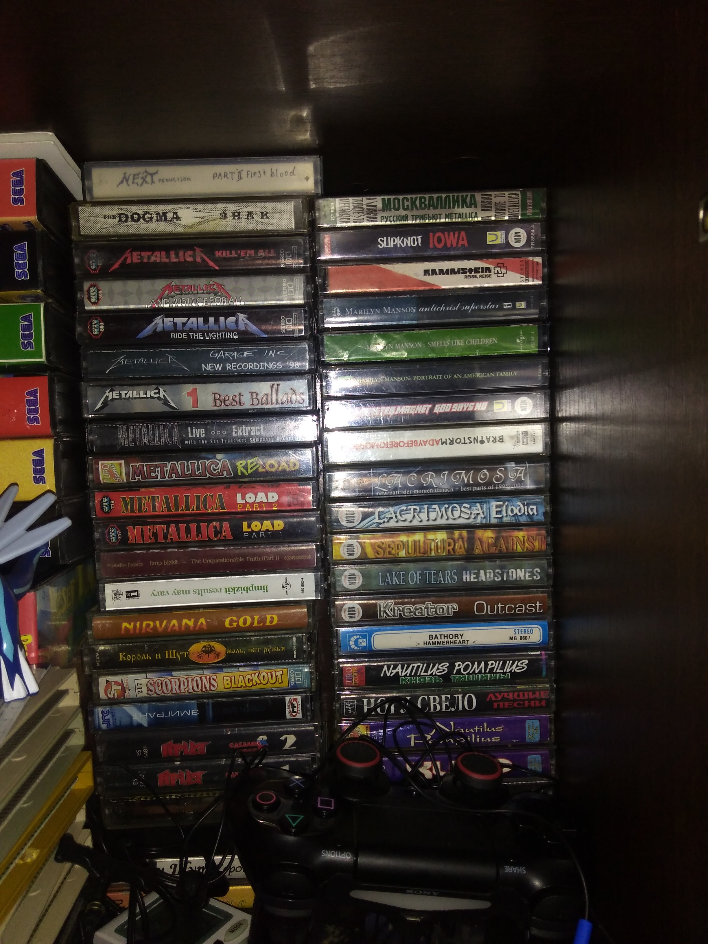 Мои личные первые кассеты были с альбомами Rammstein. Сначала слушал на кухне на стареньком магнитофоне, а потом на цифровом кассетном плеере, который мне подарили на один из дней рождения. Найти сейчас не могу его по картинкам, но он был не дешевый и не дряблый, как у многих. CD/MP3/USB-плееров никогда у меня не было, в основном брал у друзей, если надо было куда-то съездить. До раммов слушал всё то же, что слушала мама и сестра, так как особо от этой музыки дома было некуда деться: Enigma, ERA, Gregorian и всякая попса, типа Aqua, Уилл Смит, Рикки Мартин (лол)