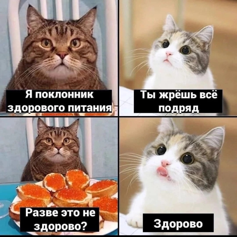 Ежедневный (!) читмил. Старается питаться правильно. Просто лол.