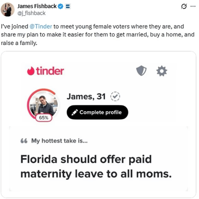 Кандидат в губернаторы Флориды зарегистрировался в Tinder, чтобы «знакомиться с молодыми избирательницами»