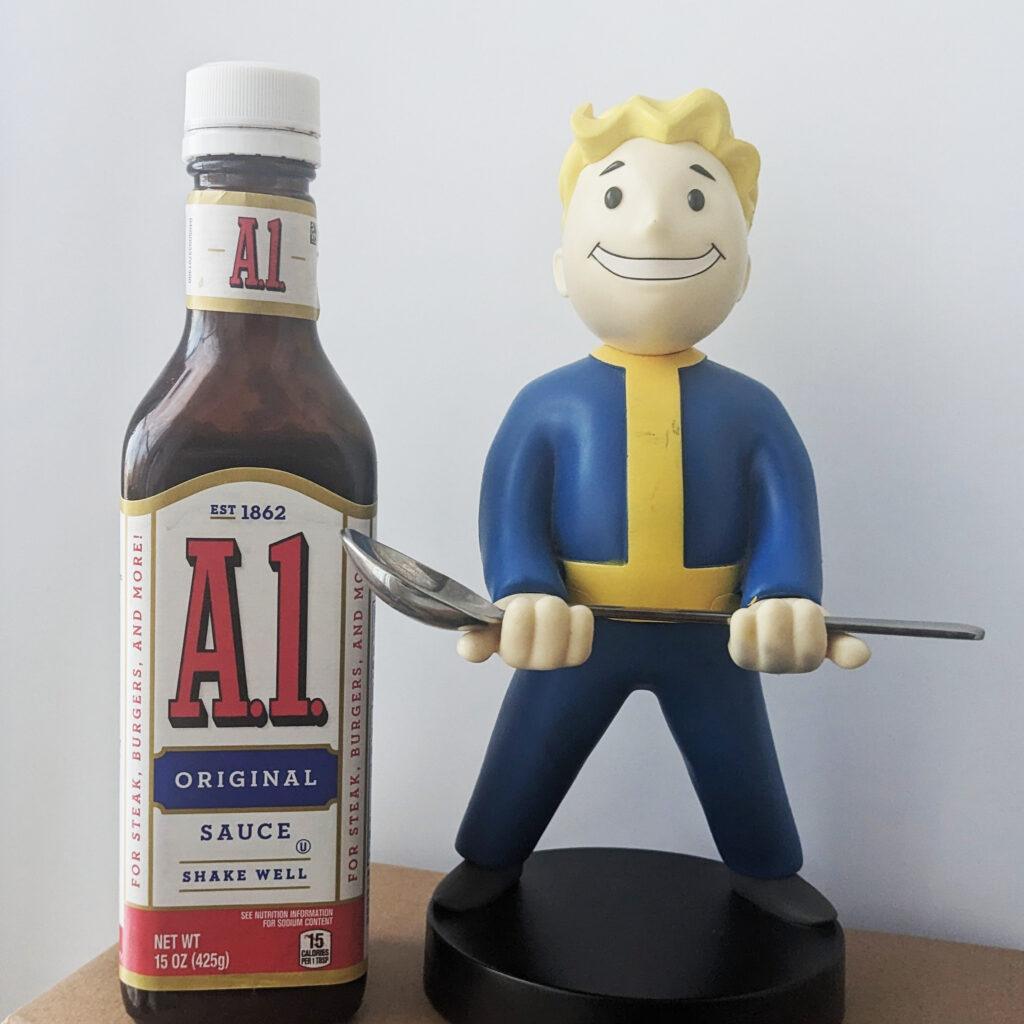 Важная деталь, которую вообще невозможно понять, если ты не житель США — стейк нужно кушать с А.1. Этот код для меня ничего не значил, кроме листа размером 594 на 841 мм. Но оказалось, так называют эталонный классический американский соус, придуманный аж в 1824 году.