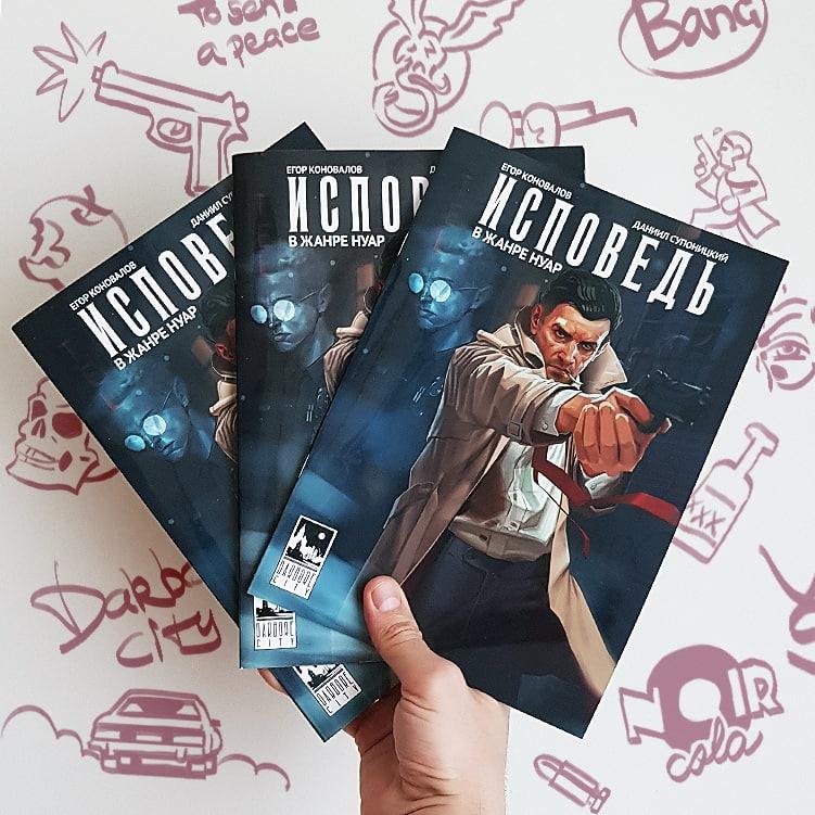 И вот недавно, вновь ощутив острую потребность в нуарной бодроте, принялся читать книгу «Исповедь», многолетний труд писателя Егора Коновалова, плотно работающего над авторской детективной вселенной. И не разочаровался — эта тягуче-маслянистая история о бывшем детективе Аллене Херте, бредущем по мрачному Дарбор-Сити в поисках правды с береттой наперевес, вполне дает прикурить.
