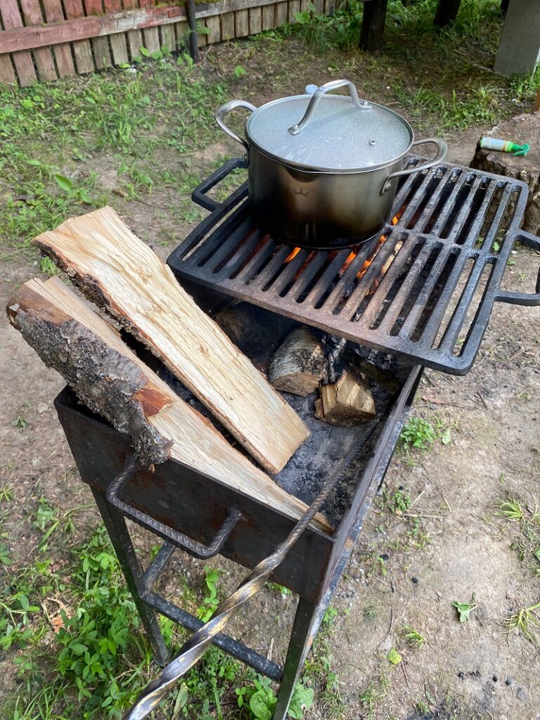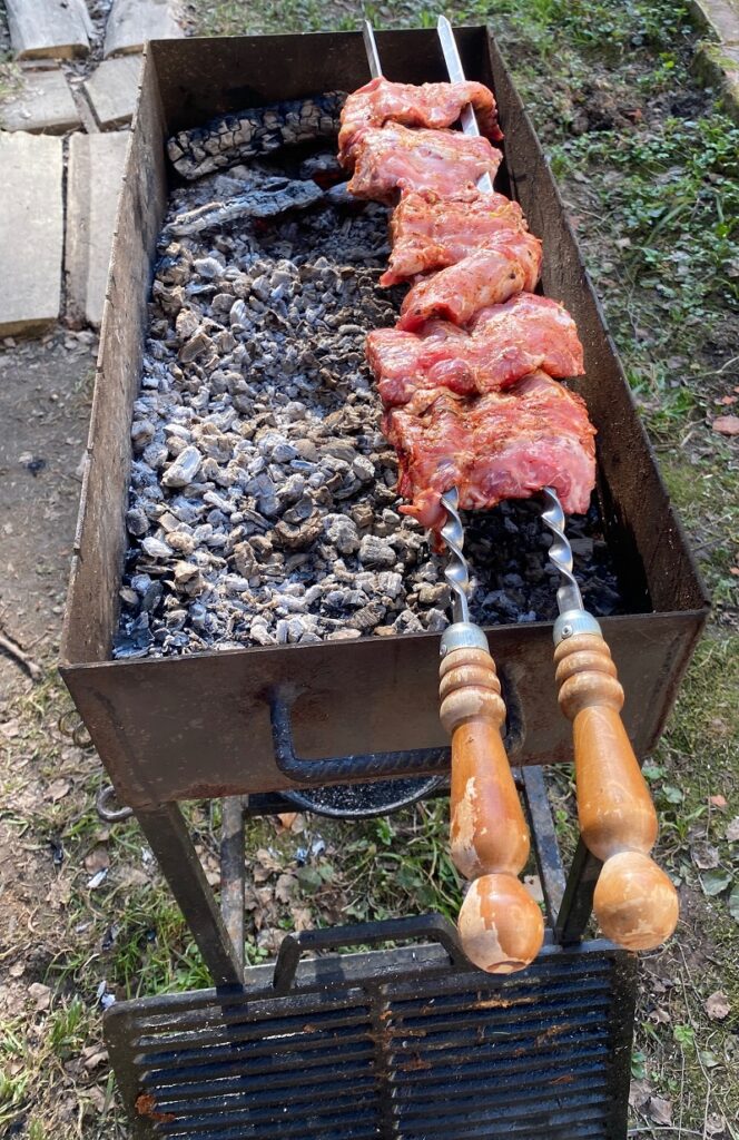 Будучи в этом вопросе обычным зевакой, я завороженно смотрел в сторону громоздких приспособлений: с крышами, колесами, встроенными иксбоксами – и думал, что без такой роскошной кареты шашлыка не будет. Оказалось, нужен простой металлический ящик с толстыми стенками, крепкий, тяжелый и подходящий пользователю по росту. И длинные шампуры с деревянными ручками.