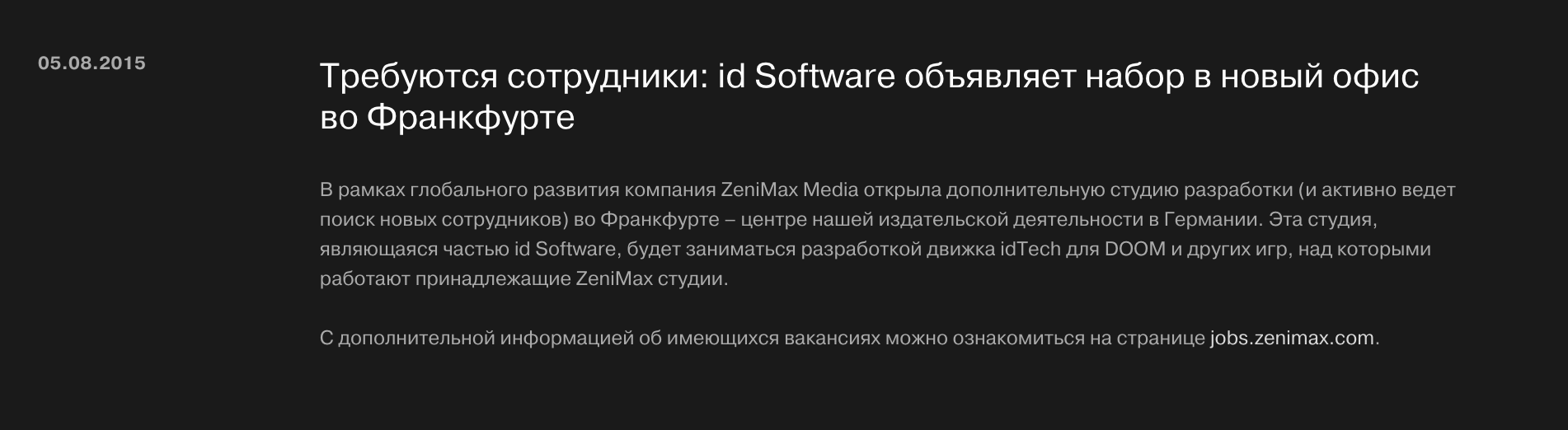 А на сайте ZeniMax появилось объявление о доступных вакансиях — совсем свежее, от пятого августа.