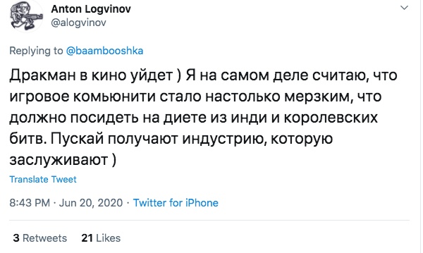 Ой, подумаешь, чего ты такой ранимый? Виктор Зуев когда-то говорил в подкасте о том что консоли зло и индустрию тормозят.