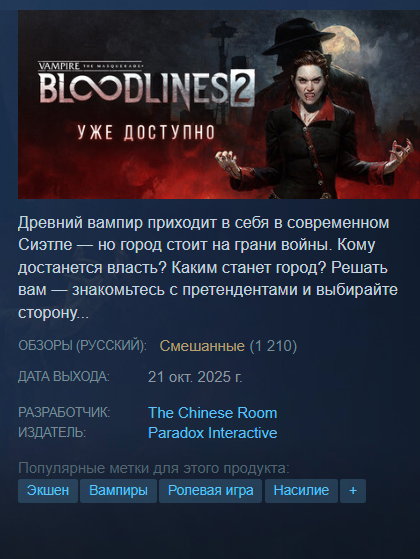 К Bloodlines 2 трудно относиться непредвзято, особенно после истории с платными классами, от которой издатель под давлением общественности отказался. Но вы всё-таки попробуйте.