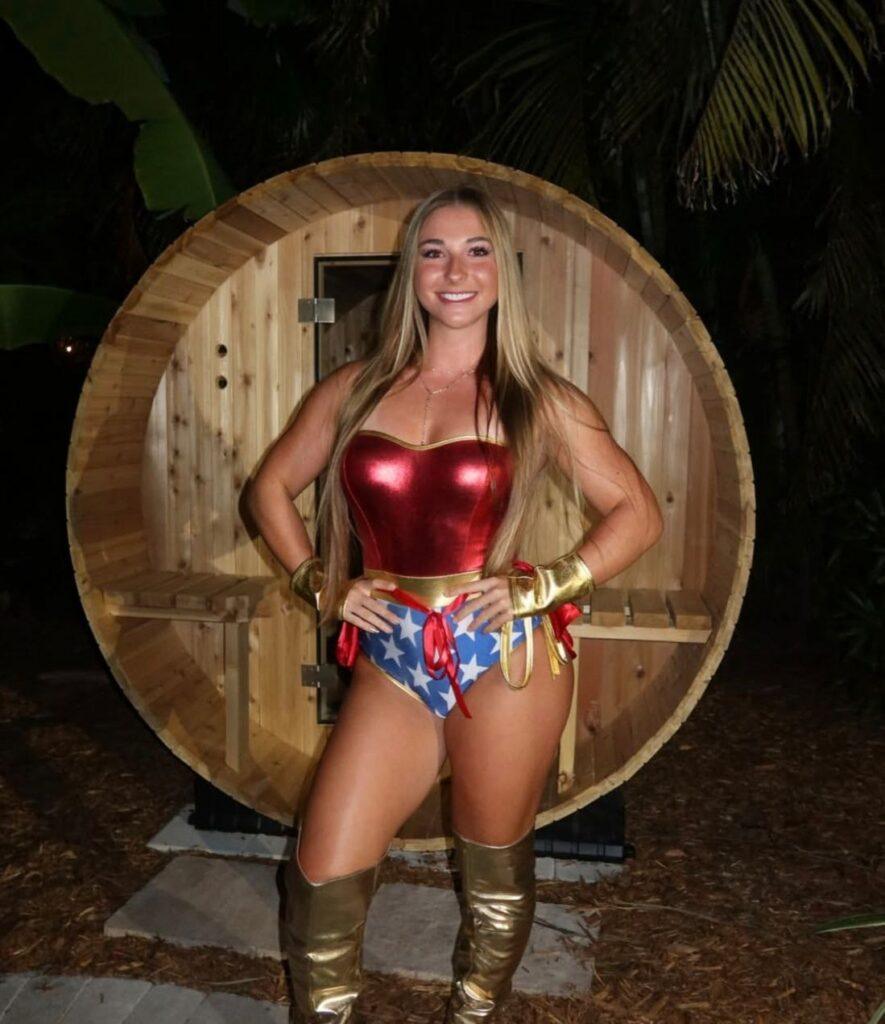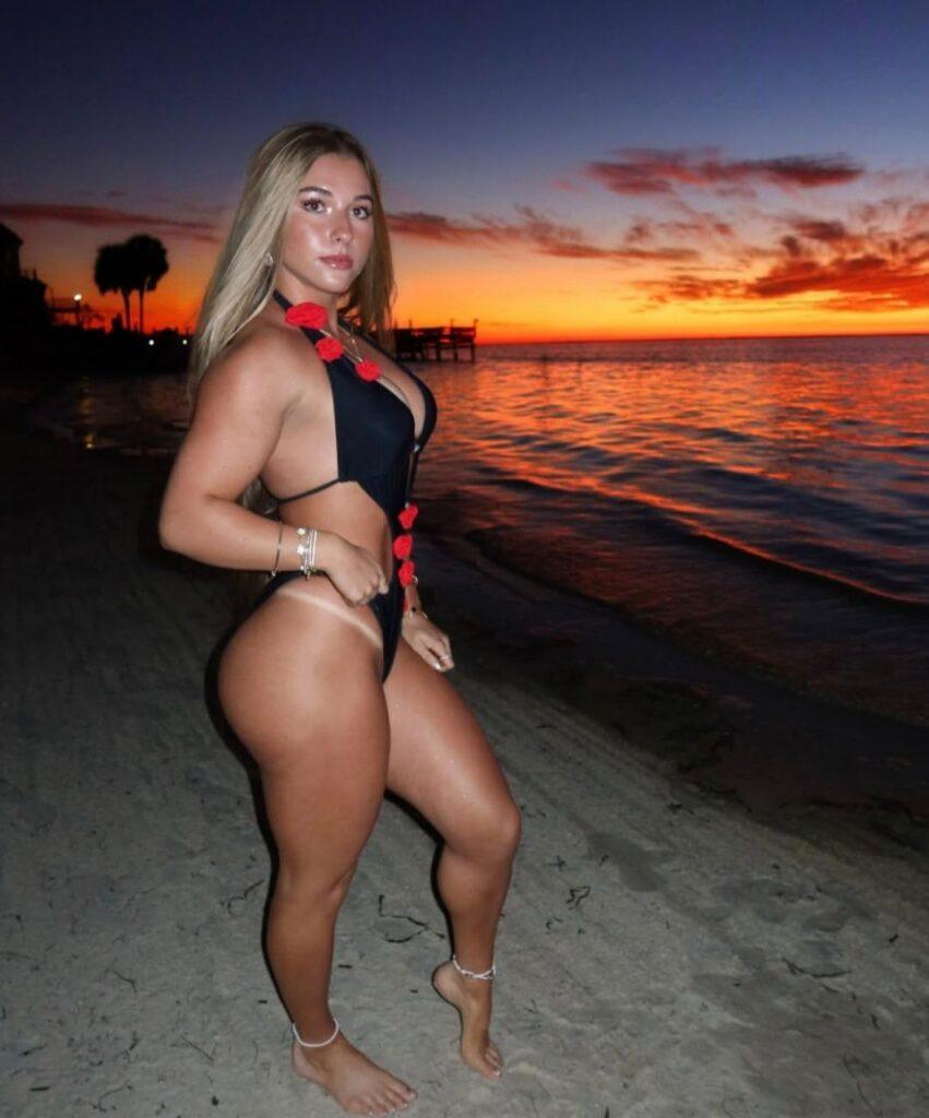 Чем хороша Элли Бринк? Во-первых, она юна и обаятельна. А во-вторых, Элли профессионально занимается пауэрлифтингом и даже участвовала в Олимпийских играх. От этого у нее образовались абсолютно фантастические ноги — крупногабаритные, но при этом совершенно не нарушающие общий обаятельный образ. А мы такое любим.