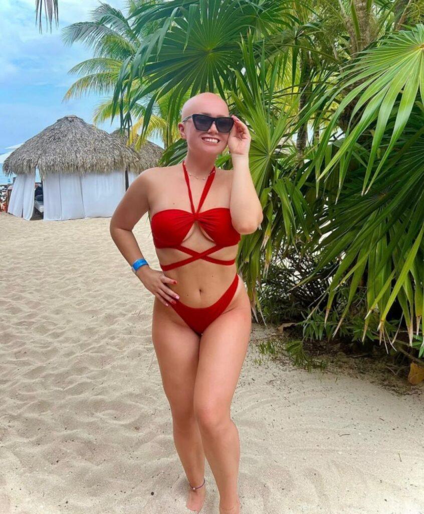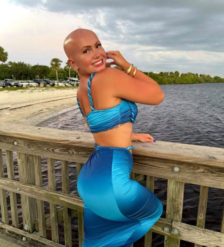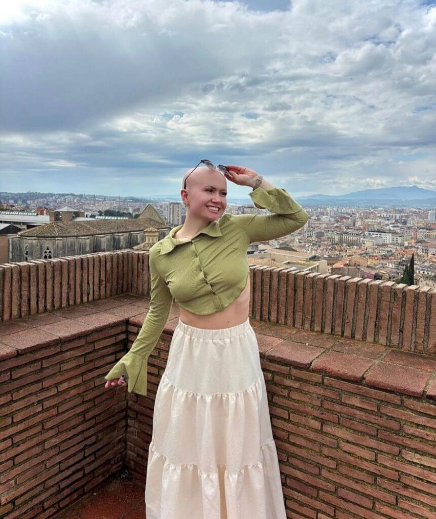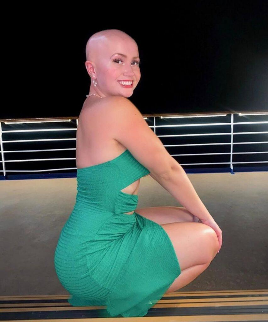 Хэйден Монтросс поразила нас жизнелюбием, улыбкой и симпатичной лысой головой. Дело в том, что она с детства страдает от алопеции, однако полное отсутствие волос никак не сказывается на ее качестве жизни. Она путешествует, снимает тик-токи, а еще помогает другим лысеющим людям по всему миру через разные фонды.