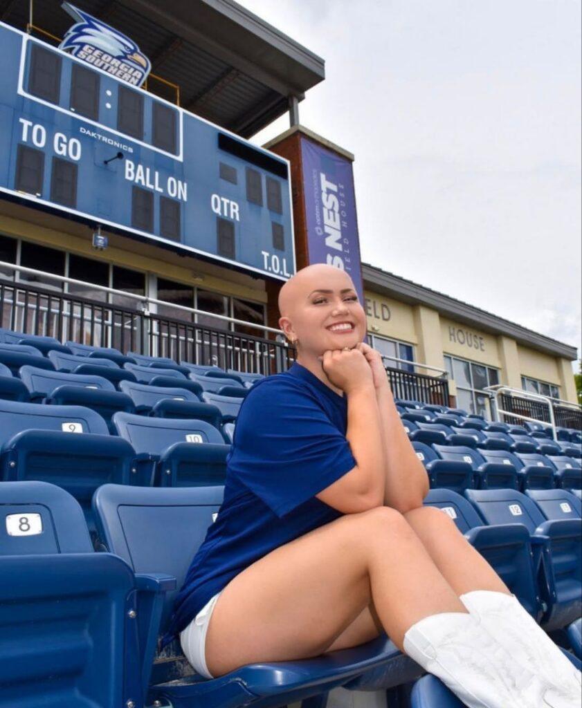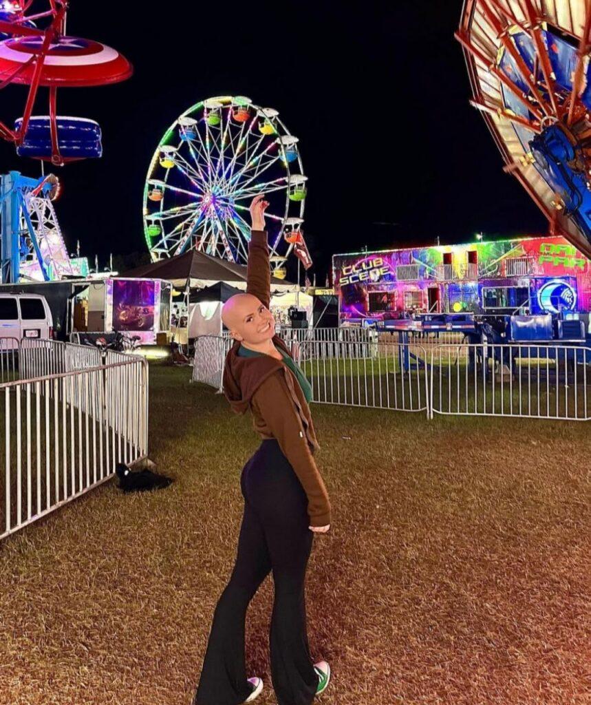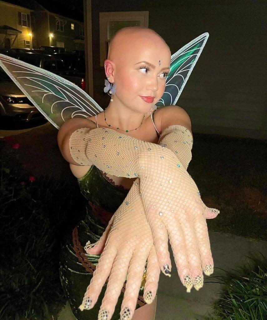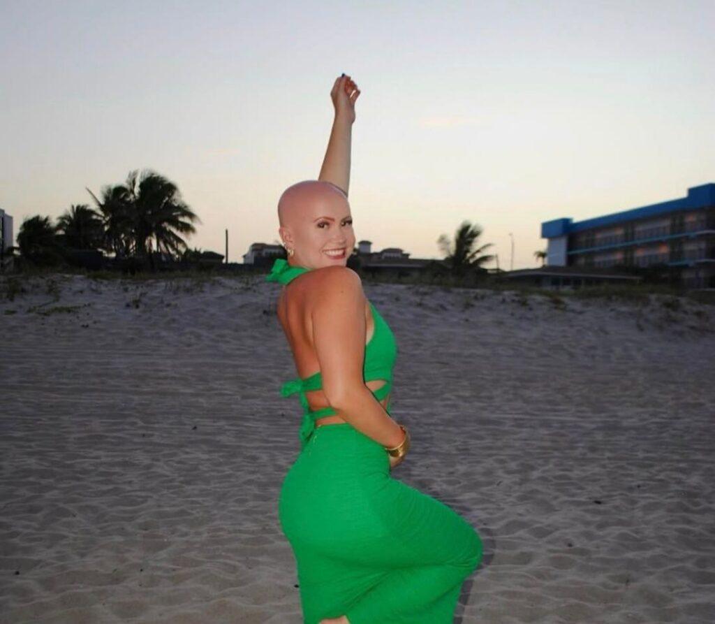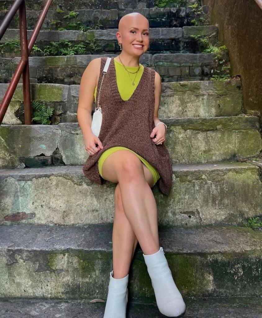Хэйден Монтросс поразила нас жизнелюбием, улыбкой и симпатичной лысой головой. Дело в том, что она с детства страдает от алопеции, однако полное отсутствие волос никак не сказывается на ее качестве жизни. Она путешествует, снимает тик-токи, а еще помогает другим лысеющим людям по всему миру через разные фонды.