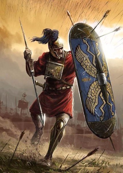 А в этот момент в вас летит новая волна, убивая тех, кто не успел убежать, или еще более утяжеляя истыканные пилумами щиты. Но вы сильные, вы выдержали. Гастаты (а это были именно они) спокойно отходят в промежутки между еще более серьезными парнями в кольчугах, которые также начинают метать в вас дротики.