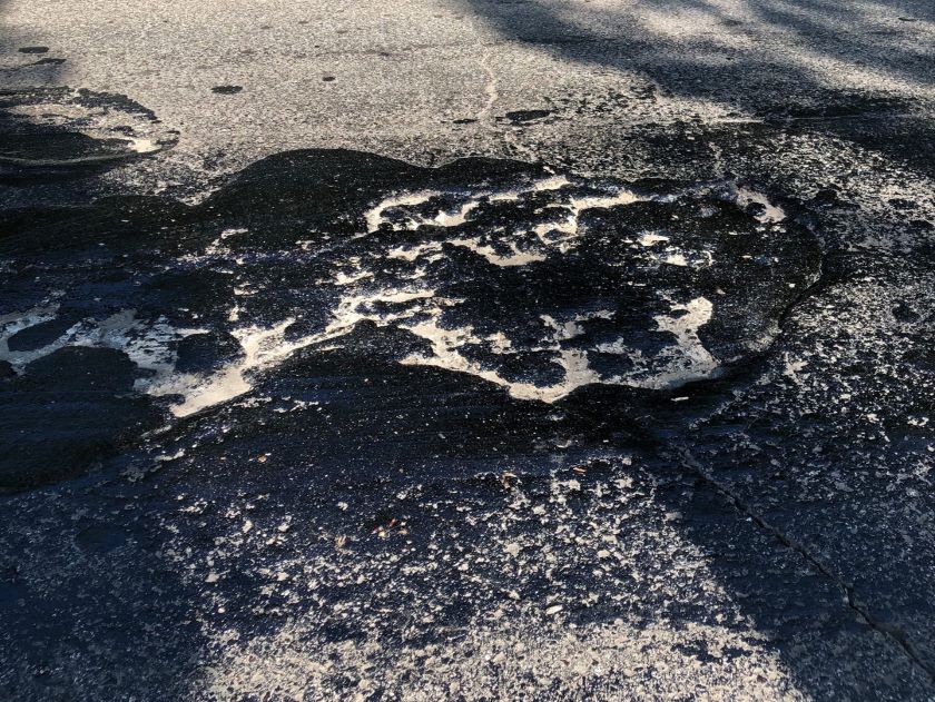 Корреспондент Chicago Tribune описал ее в 1992-м как «густую черную грязь, по консистенции похожую на жеваную жвачку». Кому-то она напоминала деготь. Власти отчаянно пытались избавиться от жижи: дороги подвергали мойке высокого давления, скребли и даже посыпали известняком, но ни одно средство не помогало. Правительства других стран предлагали помощь своих экспертов, но ученым никак не удавалось доподлинно установить даже состав жижи. Журналисты посчитали, что в некоторых местах она достигала в толщину почти 2,5 сантиметров.