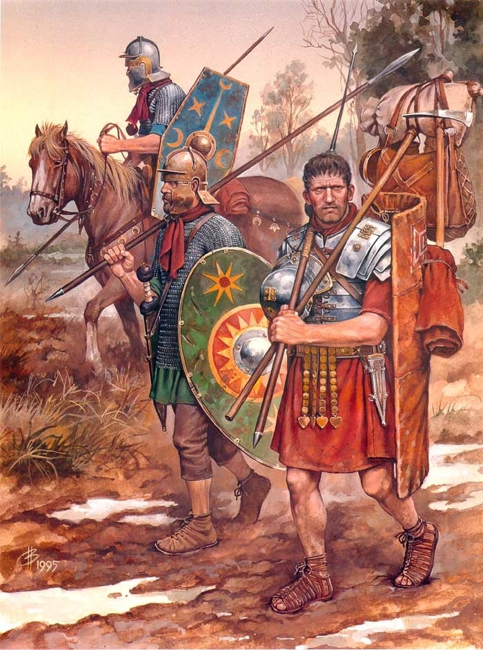 Легионеры теперь были лишь частью армии Рима, его тяжелым, профессиональным костяком. Люди, проводившие в лагере большую часть жизни в постоянных тренировках (до трех раз в день) и вооруженные по последнему слову римской техники были страшным противником.