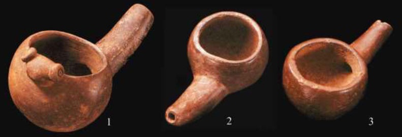 Исследователи, находившие предполагаемые кисеты для табака, долгое время не могли доказать их применение, хотя это и казалось очевидным. Небольшие, с пачку сигарет, глиняные горшочки часто подписывались «Дом табака» и изображали жизнерадостных людей с трубками или клизмами. Так что выглядело все как самая действенная реклама никотина до прибытия европейцев.