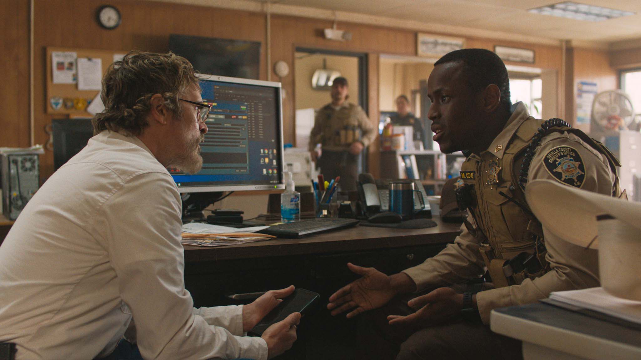 Но после того, как сюжет совершает резкий поворот — и показывает шерифа Кросса с совсем другой стороны — «Эддингтон» превращается из политической сатиры во все более напряженный триллер. На улицах городка появляются загадочные вооруженные люди, а шериф лихорадочно прячется от вражеского огня в ночных тенях, и периодически отстреливается (в том числе из колоссальных размеров ручного пулемета!). Люди вокруг гибнут жестокой, но зачастую нелепой смертью, и во всех кровавых подробностях. Кого-то разорвет на части гранатой, кому-то выбьют мозги снайперским выстрелом, а кого-то случайная пуля превратит в мясное месиво. Выглядит эта череда смертей смешно и страшно одновременно.