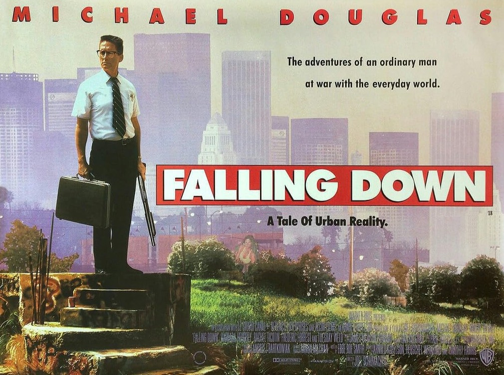 Лос-Анджелес стоит в огромных пробках, и от изнурительной жары плавятся мозги. Уильям Фостер (великолепный Майкл Дуглас), недавно уволенный работник оборонной промышленности, не выдерживает сидеть в машине со сломанным кондиционером и отправляется в ближайшую лавку купить бутылочку колы. Повздорив с владельцем магазина, Билл хватает его биту – и разносит несколько полок, при этом не забыв заплатить за баночку с напитком. Забрав биту, он собирается в длинное путешествие через весь город на день рождения к своей дочери, а по пути оставляет за собой след из нарастающих хаоса и разрушения.