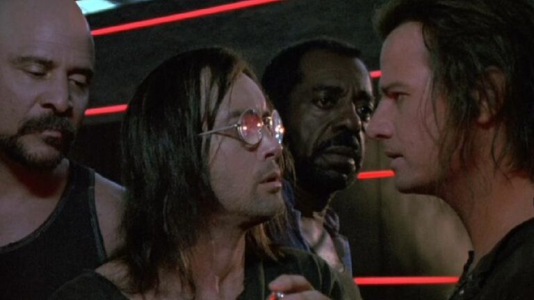 Ну и не стоит забывать о том, что для своего самого дорогого фильма Гордон собрал шикарный актерский ансамбль и прекрасную съемочную группу. К примеру, оператором у него был Дэвид Эггби, ранее снимавший первого «Безумного Макса» и мрачный спортивный постапокалипсис «Приветствие джаггера», а за монтаж отвечал Тим Вельбурн, работавший уже над вторым «Безумным Максом». Роль Джона Бренника сыграл Кристофер Ламберт, тогда метивший в большие экшен-звезды, а среди других заключенных мелькают знакомый нам Джеффри Комбс, а также Вернон Уэллс (главный злодей из «Коммандо») и Том Таулз (помощник шерифа в «Изгнанных дьяволом» Роба Зомби). Специального упоминания заслуживает Кертвуд Смит (очкастый отморозок Бодикер из «Робота-полицейского»), сыгравший начальника тюрьмы – у него получился бесчеловечно хладнокровный циник, исполненный презрительного превосходства над всеми окружающими.