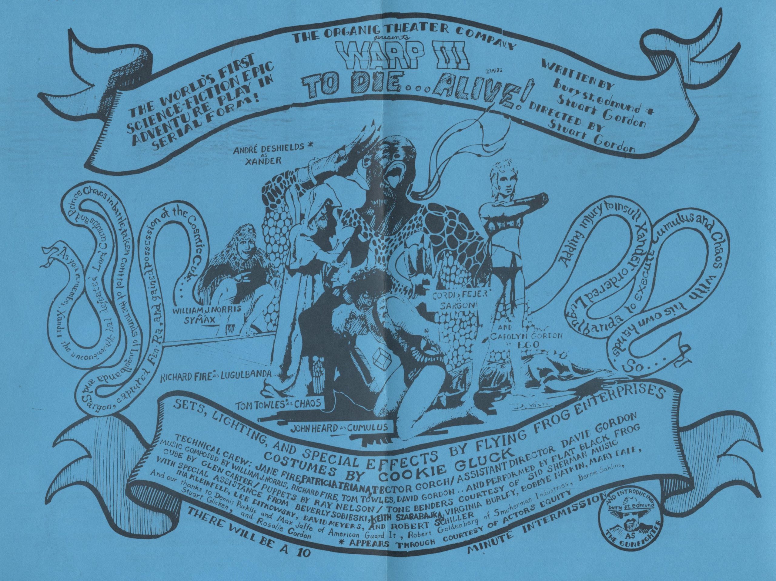 Но самой экстравагантной работой Гордона в театре стала постановка космо-оперы «Warp!», состоящей из трех частей. Ее сюжет был вдохновлен марвеловскими комиксами, но Гордон добавил в него легкий налет кэмповости, заострив внимание на контрасте пафосной обстановки и комичных диалогов.
