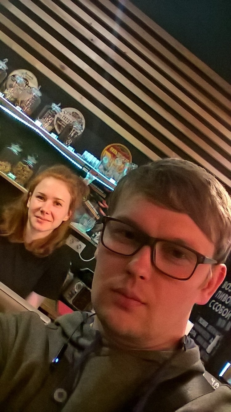 Очкарик, вообще непонятно, каким образом в кадр попал. Не обращай внимания. Смотри, какой огненный цветок за его спиной, распускается)