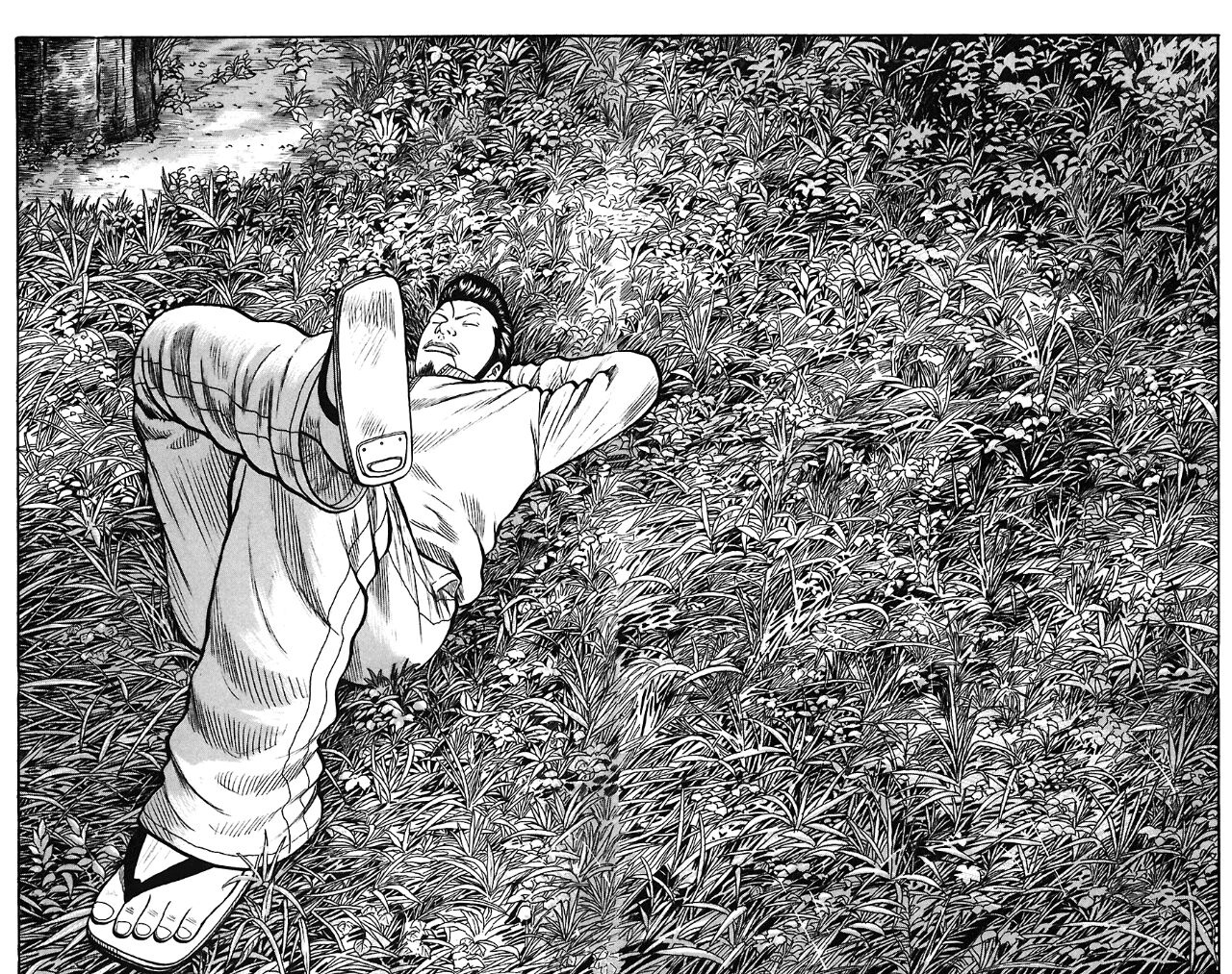 В дальнейшем мы наблюдаем рост и становление Миямото через серии жестоких сражений с отличной постановкой и динамикой, приятно раскраивающих страницы манги на кусочки человеческих тел и проникаемся философией персонажей, которым выделено достаточно времени не только на архетипизацию, но и создание определенного окружения для подачи того или иного мнения о верном пути самурая. Важно отметить, что манга выполнена кистью, а не пресловутым пером, и автор не просто попытался возвысить свой престиж сложной техникой, но и удачно применил её для передачи экспрессии действий, чтобы батальные сцены радовали глаза сочностью во всех отношениях.