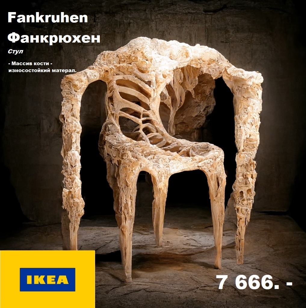 Нет, он не съел мою плоть. И не сжёг на ритуальном костре. Он сделал изысканный стул. Невиданную и трудно представимую мебель.