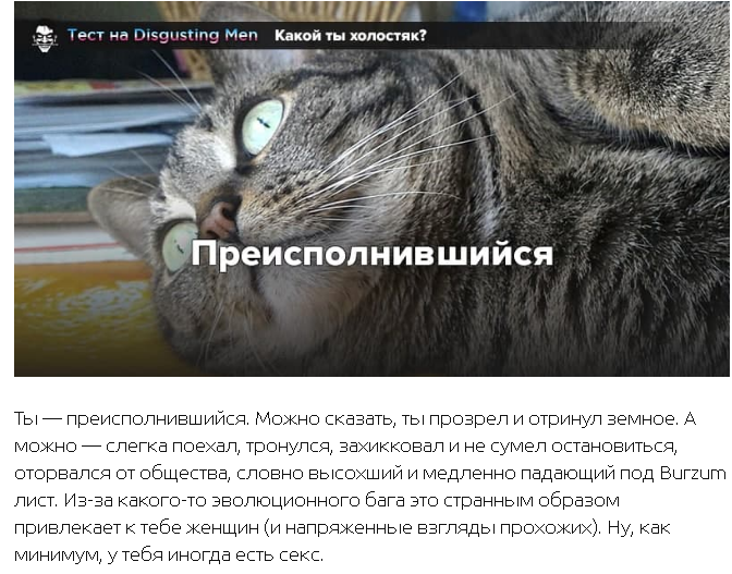 Ты — секс-гангстер! Очевидно, единственная причина, по которой ты не женат — вокруг тебя слишком много женщин. А еще слишком много бухла, дикарских приключений и постыдных моментов. Ты — безответственный, но это безответственность варвара, впервые попавшего в римский квартал красных фонарей. Ну, как минимум, у тебя есть регулярный секс.