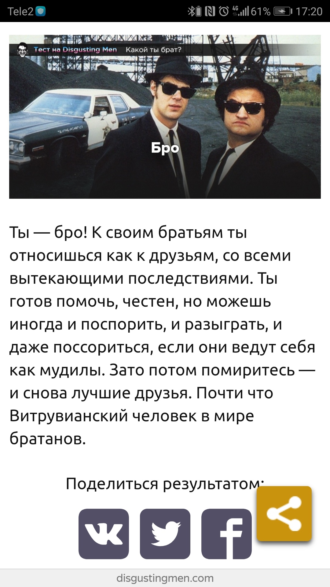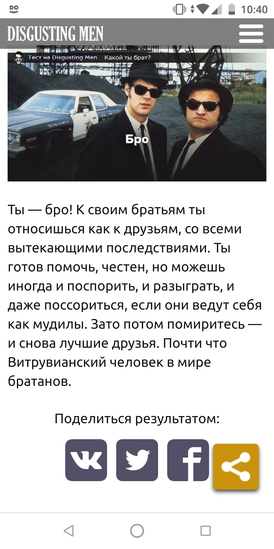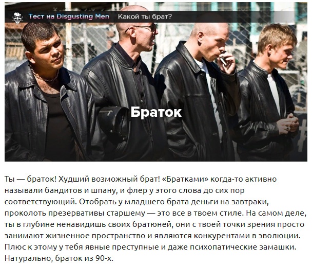 В честь такого не обязательно но душевного праздника Отвратительные мужики предлагают пройти тест и узнать, какой ты брат. Братюня или брателло? Бро или братуха?