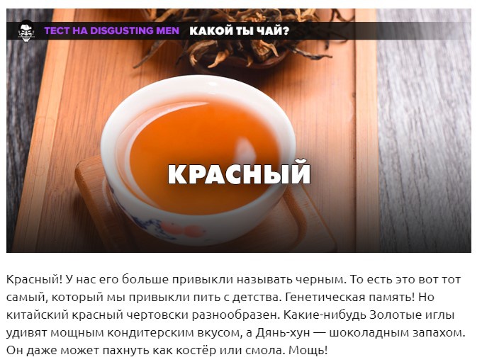 Красный! У нас его больше привыкли называть черным. — а я хотел пуэр блэд, он там есть вообще в тесте? это потому что я толстого вместо ебучего выбрал, наверное