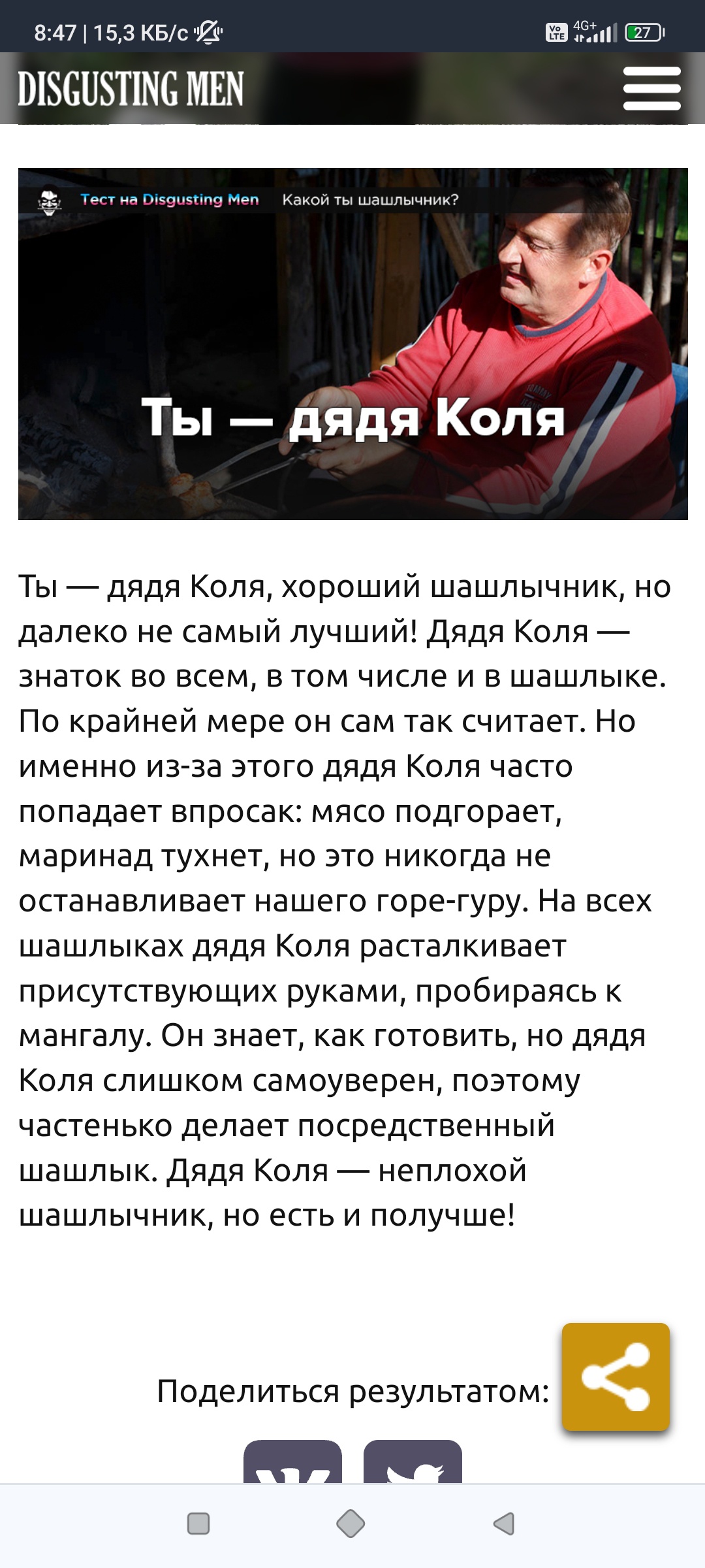 Я понял только что этот тест составили Эдик Бровин и Дрон Самойлов. Парни, не давайте им готовить шашлыки, не рискуйте.