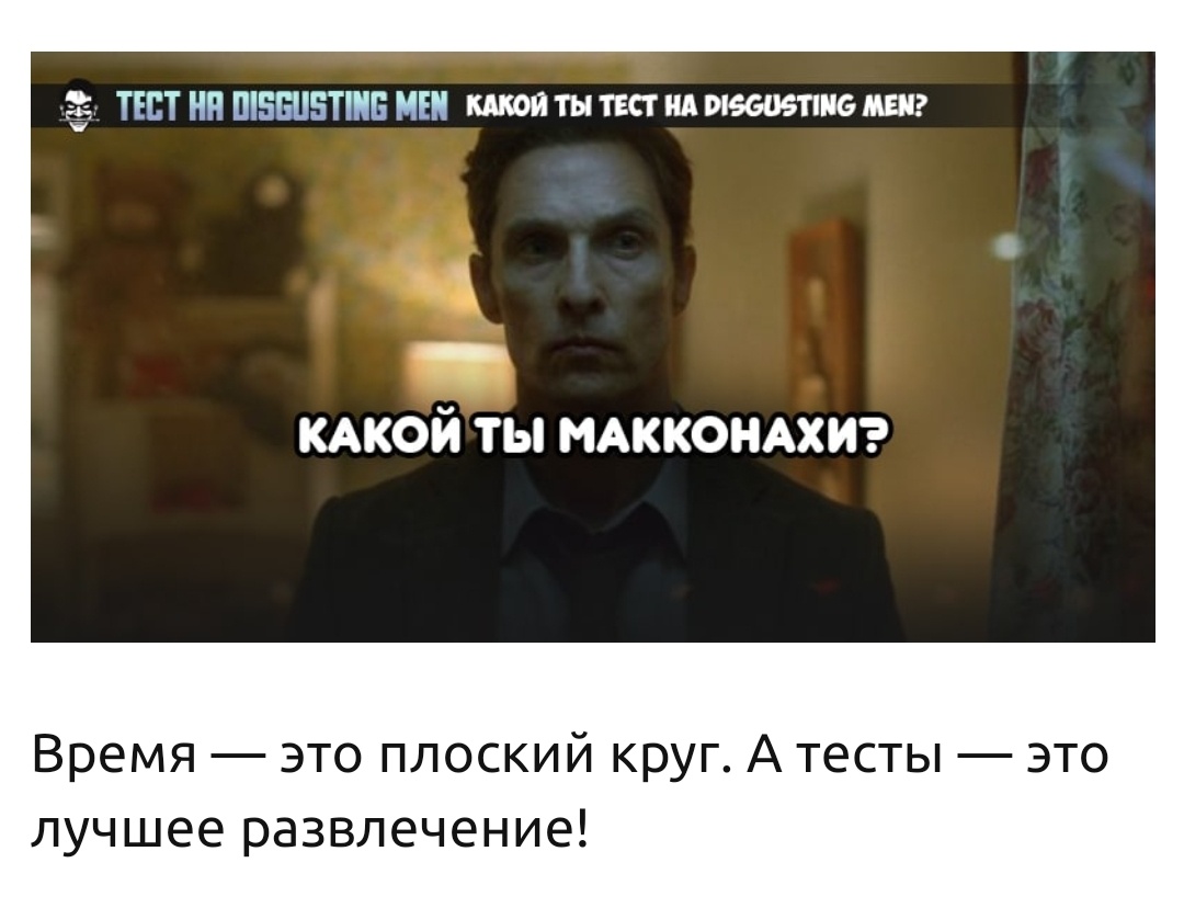 9 сентября все прогрессивное человечество празднует день тестировщика. Естественно, мы не могли пройти мимо и решили сделать не просто тест, но тест тестов. Мета-тест! Ответь на 9 ужасающе каверзных вопросов и узнай, какой ты тест на Disgusting Men! Кто знает, к каким ужасающим знаниям о себе приведет тебя эта дорога?