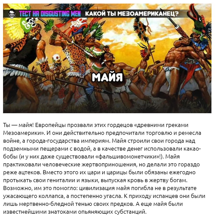 Для тех, кому ближе североамериканские индейцы, у нас уже есть отдельный тест:
