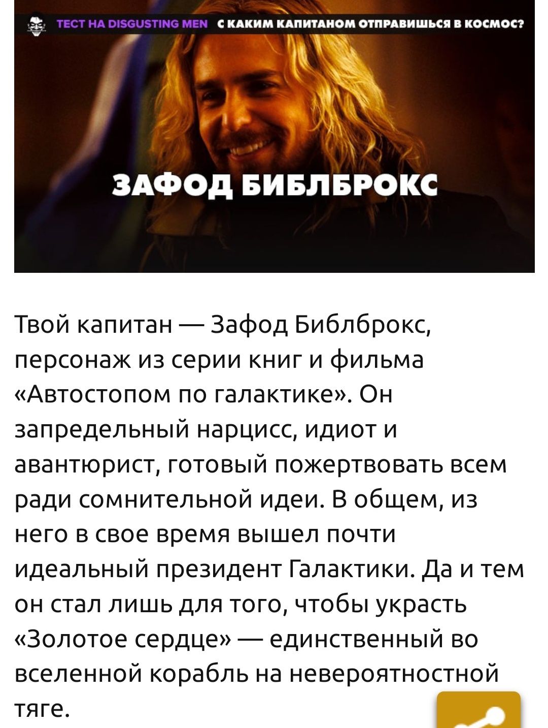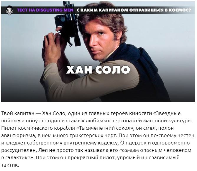 День космонавтики — это, конечно, круто. Но всего этого стремления в космос, жажды полетов не было бы без фантастики. Космические полеты сначала возникли в воображении. Герои сначала появились на экранах и пленке. В общем, отдадим дань массовой культуре и советуем пройти очередной бессмысленный и беспощадный тест на Disgusting Men.
