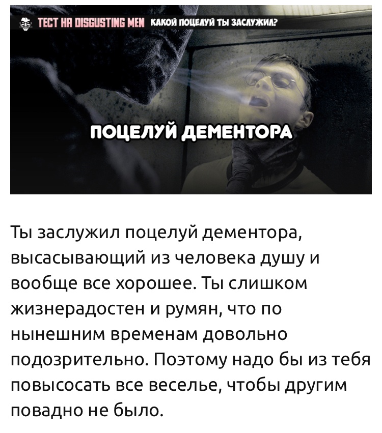 Как только увидел заголовок теста, подумал: «надеюсь, там есть дементор». Его и получил.