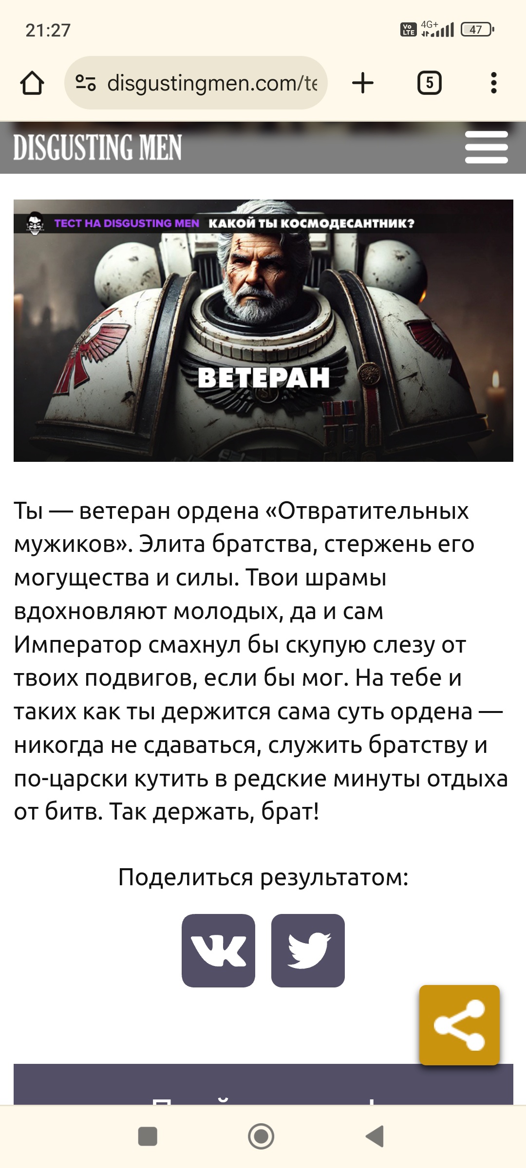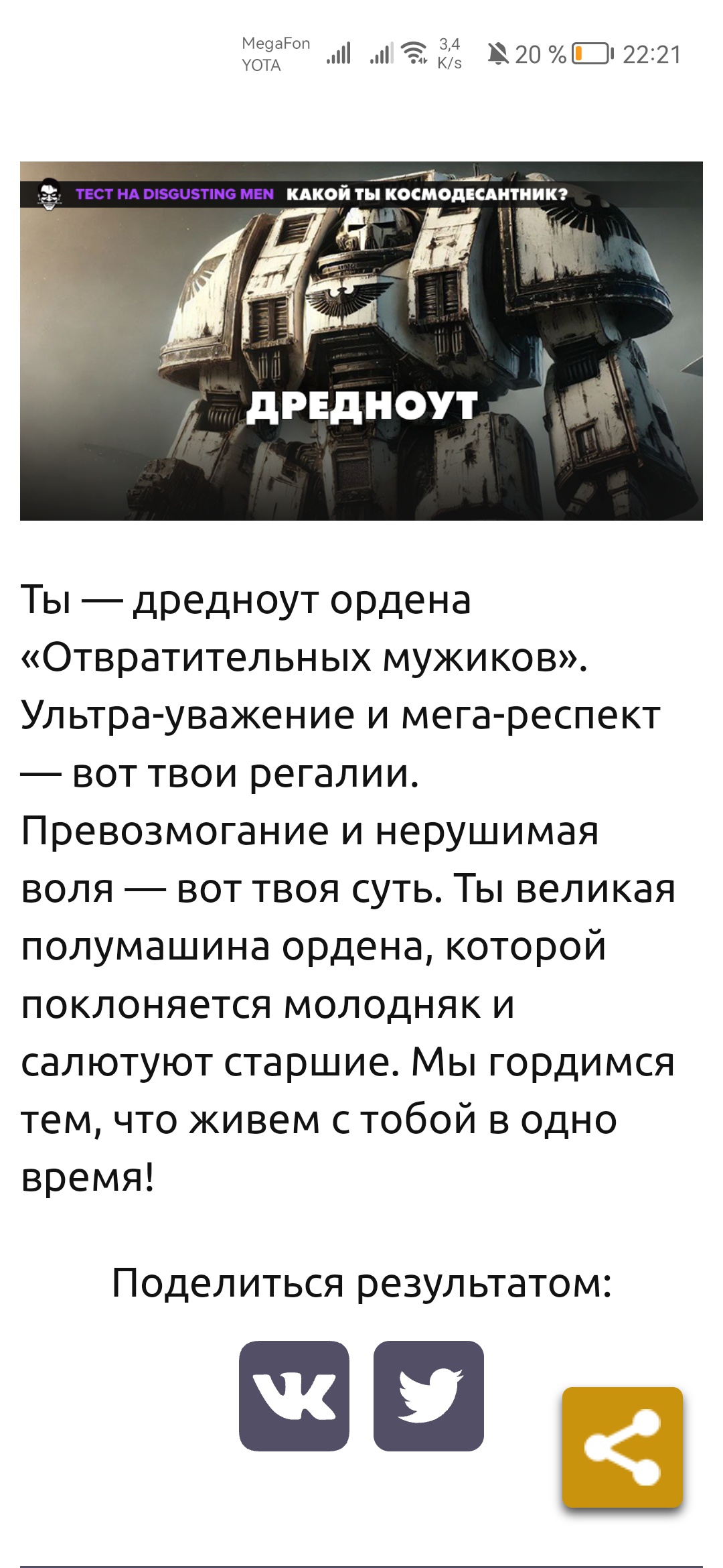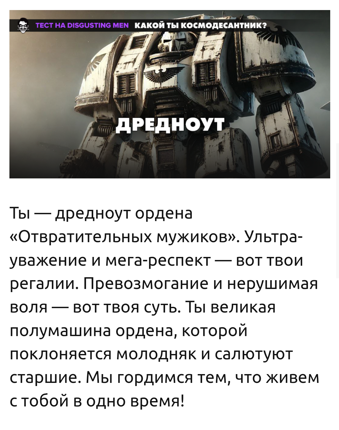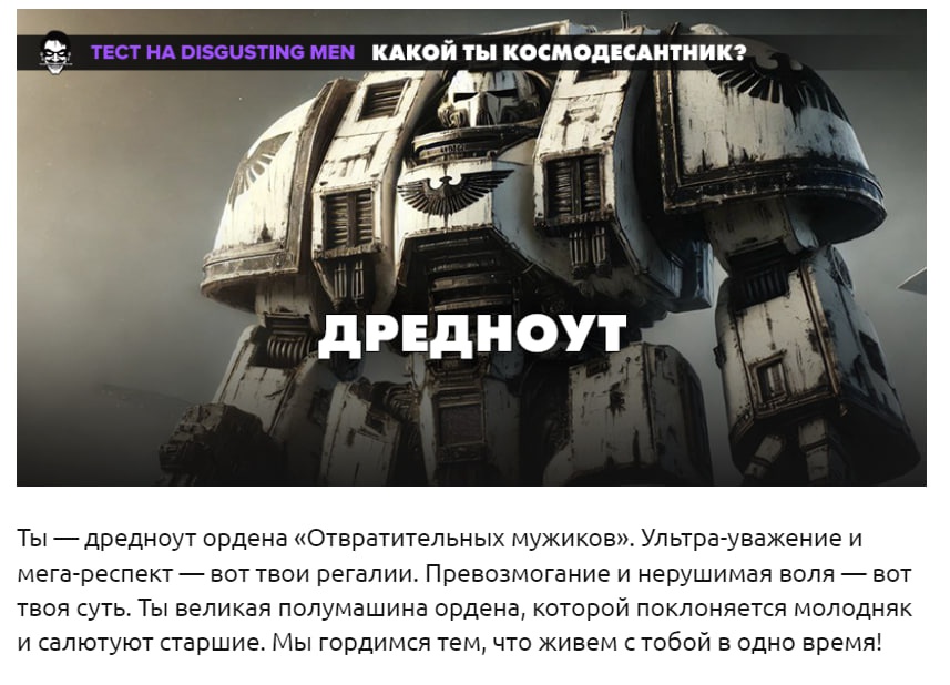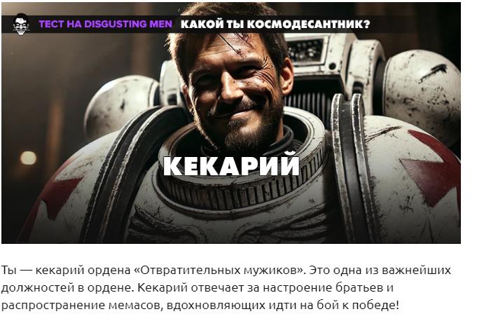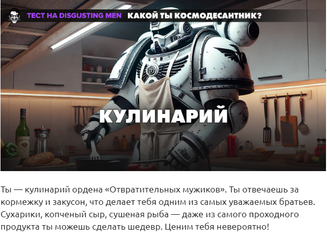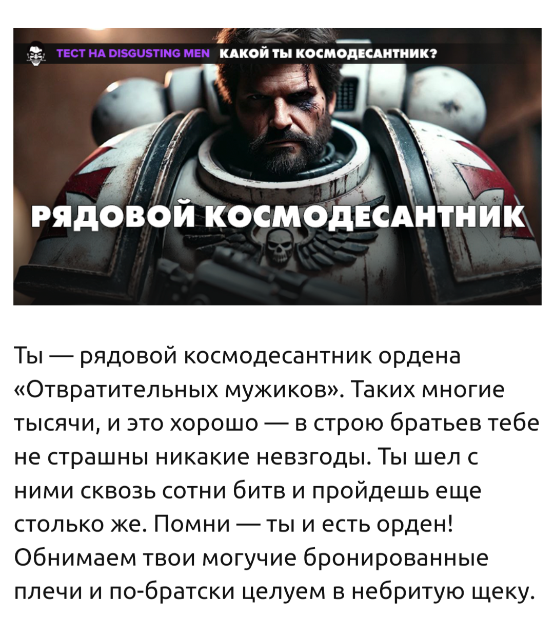 Брат, ответь на 8 вопросов и узнай, какой ты космодесантник из ордена «Отвратительных мужиков»!