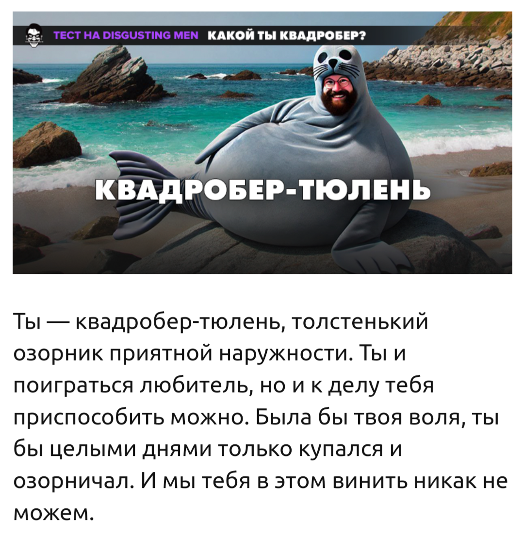 Ты — квадробер-тюлень ебать как смешно