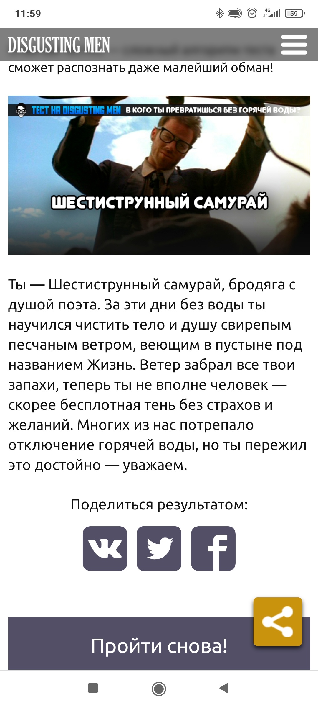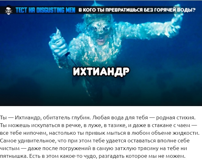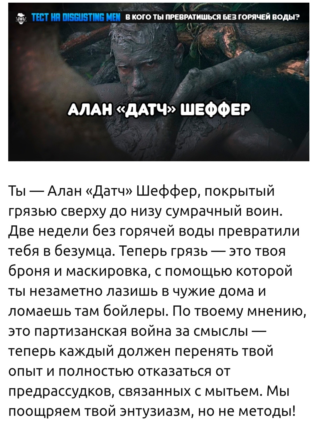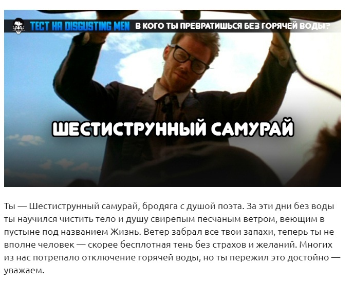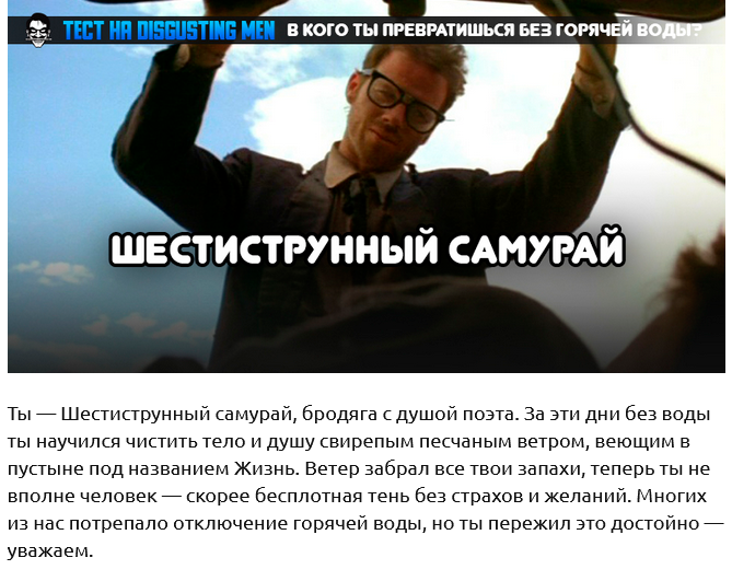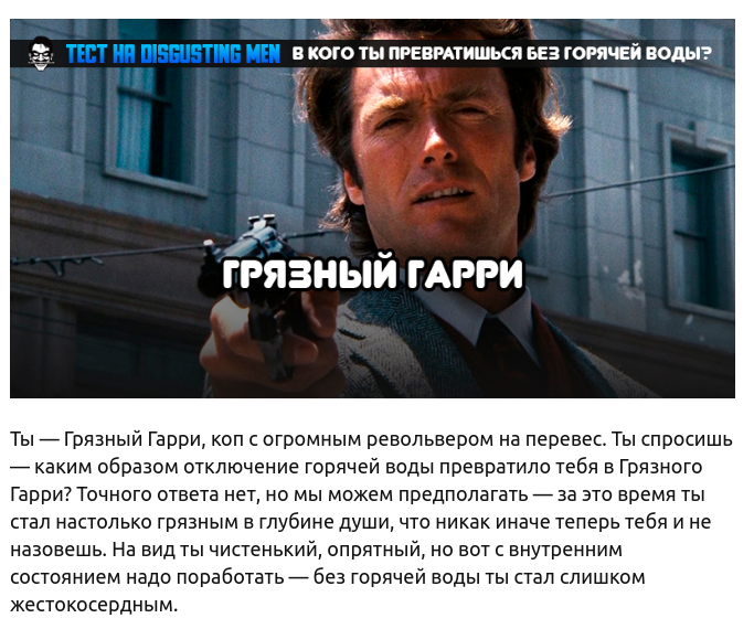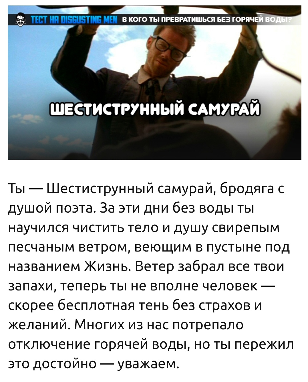 Полагаешь, это не про тебя? Тогда пройди наш хитрый, полный тайных подтекстов и психологизма тест и узнай, в кого ты превратишься без горячей воды?